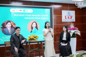 Ngày 25/10 vừa qua, Khoa Tiếng Anh – Trường Đại học Kinh tế Tài chính TP.HCM (UEF) đã tổ chức tọa đàm “Building Your English Center: Insights from Experts” với sự tham dự của các diễn giả là ThS. Nguyễn Trần Nam Phương – Giám đốc Trung tâm Anh ngữ Nam Phương (NPC) và ThS. Nguyễn Minh Quân – Tổng Giám Đốc Nhất Tâm Agency, Chủ tịch BNi Strong Chapter, Giảng viên Khoa Tiếng Anh UEF.